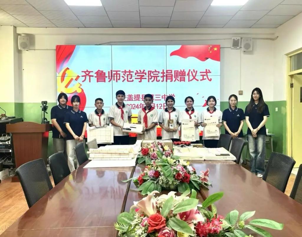 根据麦盖提中小学学校书画、国学、美术实际情况及书法社团、美术社团的开设情况,书画工具分别捐赠给了麦盖提县第三小学、麦盖提县第一中学、麦盖提县第二中学、麦盖提县第三中学、麦盖提县第四中学。援疆带队教师牟伟主席、姜晨副书记、以及部分援疆支教实习生作为学校代表向麦盖提中小学捐赠书画工具,日照援疆教育发展中心王冰心校长应邀参加捐赠仪式。
