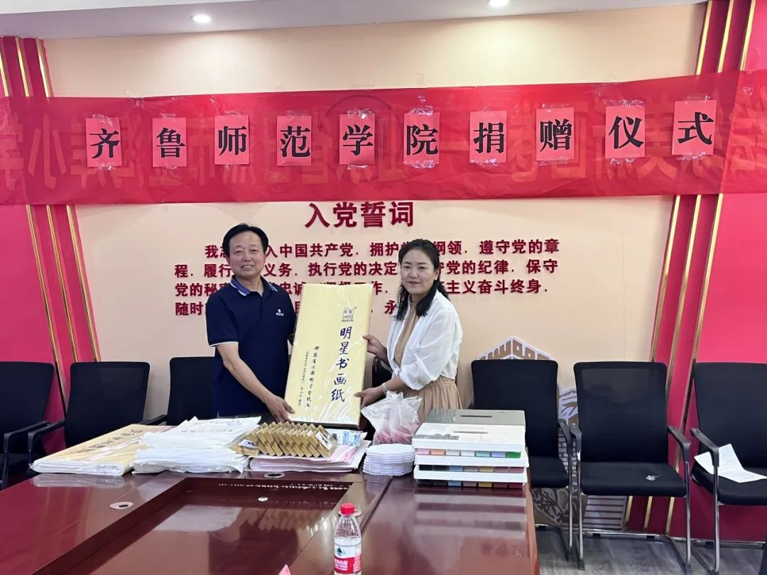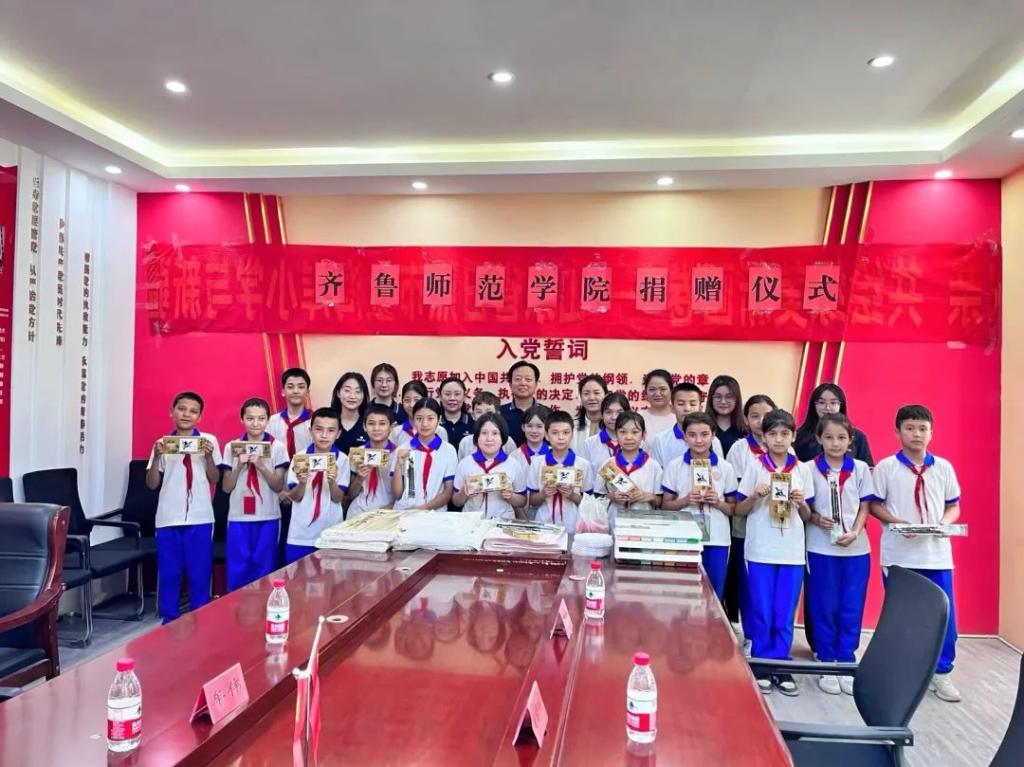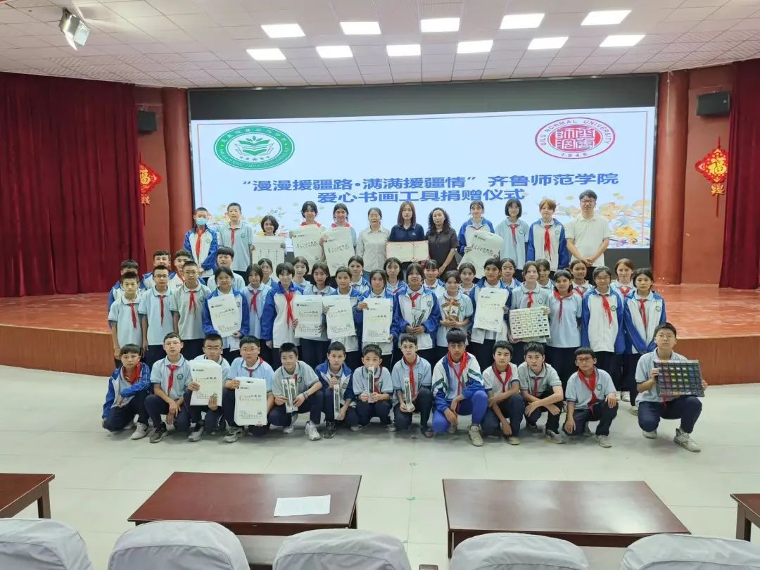 五所学校的校领导向188bet金宝搏在线登录和援疆实习支教团表示感谢,并表明要充分发挥这批书画工具,提高同学们的书画素养和艺术修养,提高美育浸润度,增强社团之间的交流。