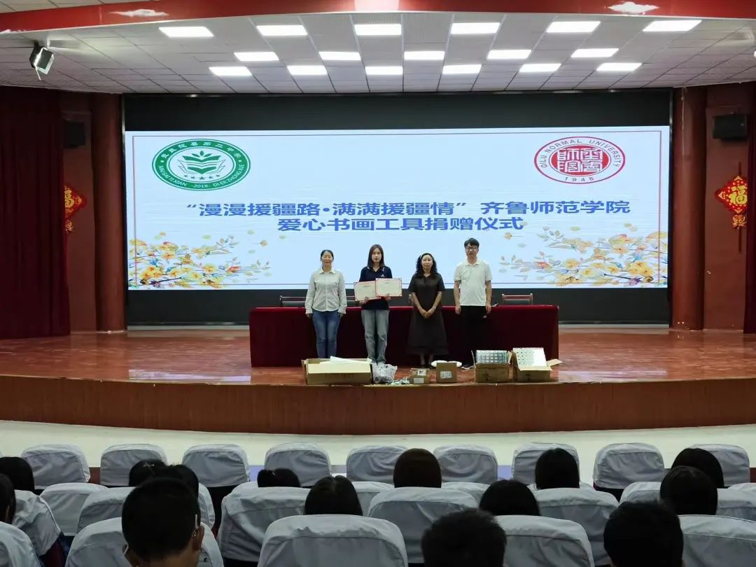 捐赠仪式上,188bet金宝搏在线登录援疆实习支教团带队教师牟伟向受援学校对我校援疆实习支教大学生的关心、支持与帮助表示感谢,介绍了捐赠物品的种类、数量等基本情况。他希望同学们多多了解接触美育知识,在实践中发现美,涵养浓厚的美育兴趣,以此次捐赠为契机,让美育思想陪伴同学们在艺术道路上不断探索、不断前行。