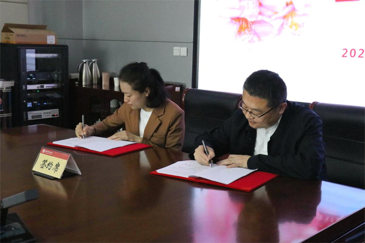 辛源与肥城市安临站镇圣井峪景区总经理杨红娟签署写生基地合作协议。