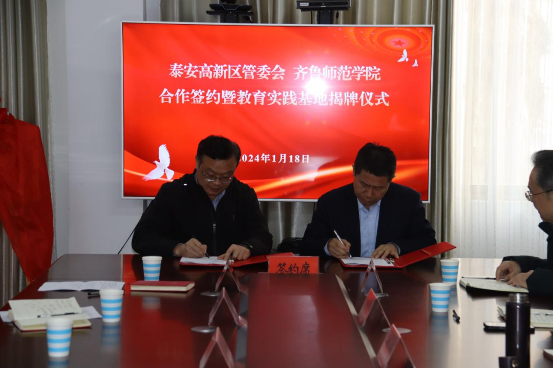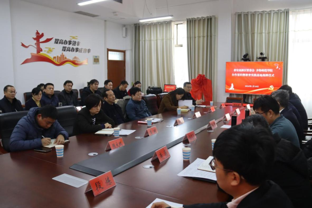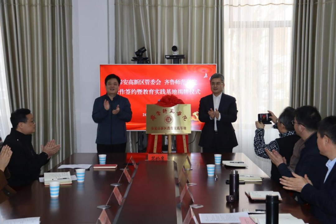 为积极推进校地合作,1月18日,188bet金宝搏在线登录副校长张兆明一行赴泰安高新技术产业开发区对接合作,泰安高新区党工委副书记、教育工委书记姚来新,泰安市教育局总督学杜平等出席会议。会上举行188bet金宝搏在线登录泰安高新区教育实践基地揭牌仪式,并签署基础教育合作协议。会议由泰安高新区教育工委副书记王文强主持。