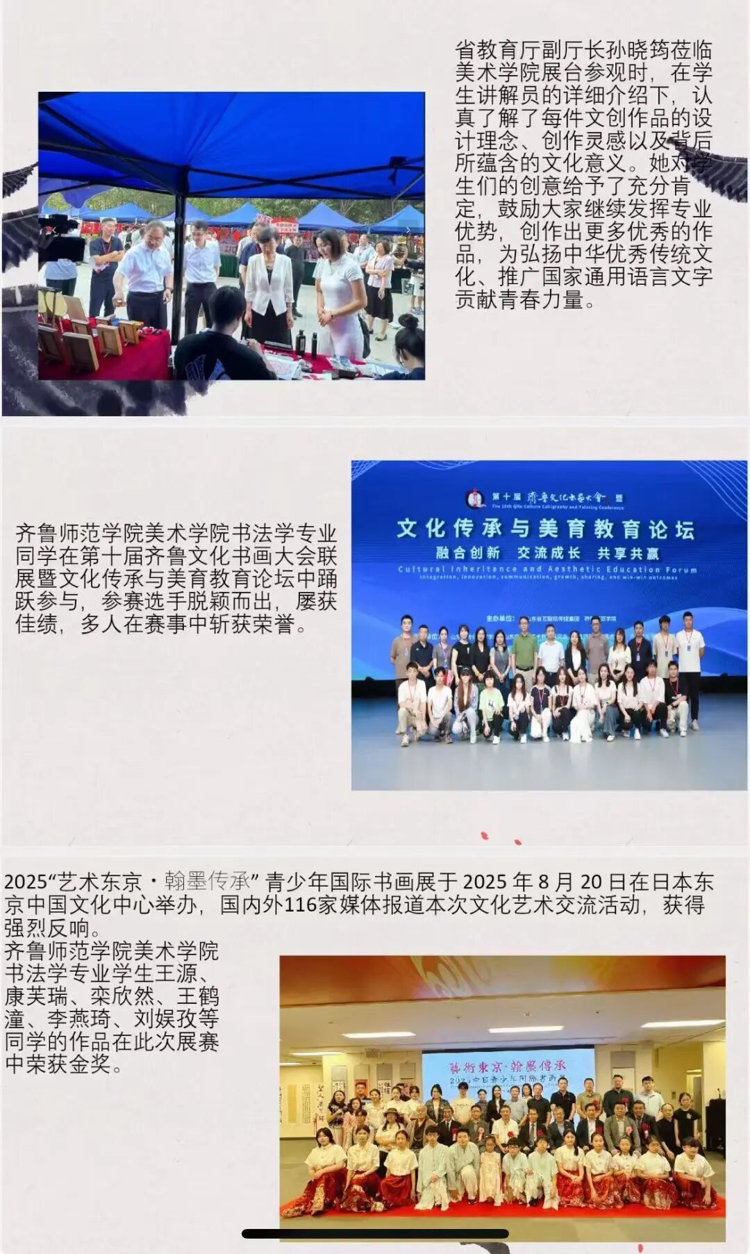 见面会中,书法学教研室副主任谭宏熙详细介绍了美术学院书法学专业近年教学成果和社会活动,包括学术交流与讲座、赛事获奖、展览与文化活动、教师荣誉与项目、文创与社会影响等各个方面的建树,既展现了书法学专业扎实的教学功底,也凸显了其与社会需求的深度融合,让同学们看到专业的发展活力。