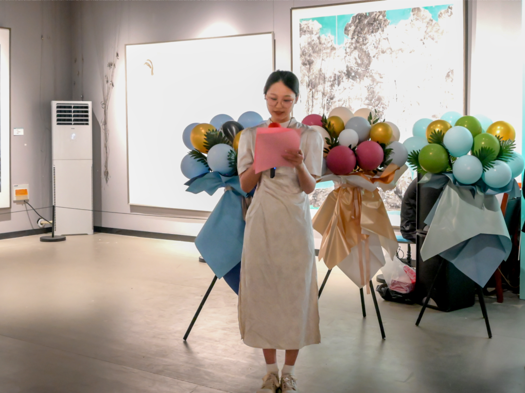 杨三军在致辞中向学校党委的大力支持、学院教师的辛勤付出以及同学们的求知若渴表示感谢。他表示,在学校党委的坚强领导与鼎力支持下,美术学院党政班子锐意进取,以严谨端正的教风学风筑牢根基,以多元拓展的人才培养路径铺就通途。近年来,美术学院积极响应学校弘扬优秀传统文化、弘扬传播君子文化的号召,致力于塑造“君子文化”与美育融合的特色品牌,矢志培养德才兼备、知行合一的高素质应用型艺术人才。在全体师生的努力下,美术学院积极向上的势态,借助本次展览得以充分展示。希望同学们珍藏这段在美院求索的珍贵记忆,永葆笔墨丹青的初心与热忱,以破茧化蝶的锐气与坚毅,勇敢迎接未来的挑战与机遇。