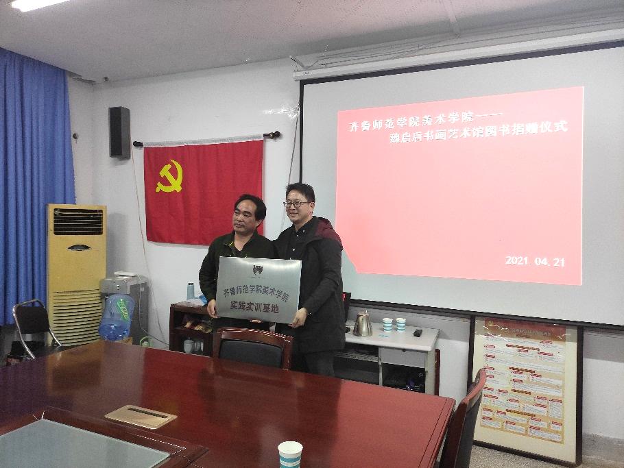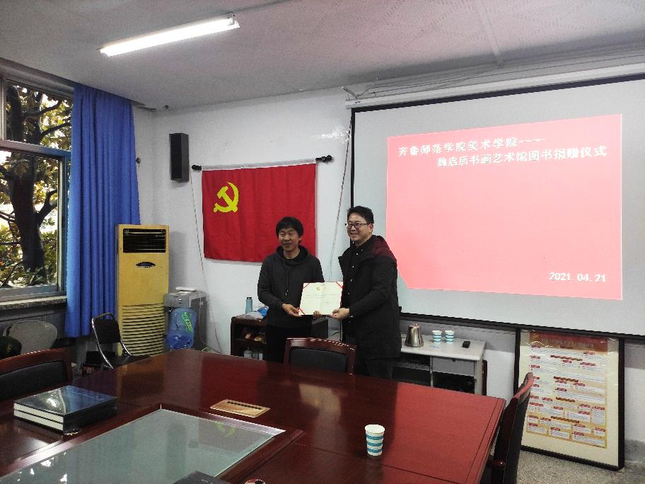 2021年4月2日,魏启后家人及魏启后书画艺术馆李德生馆长向美术学院捐赠了魏启后先生的书画集和有关期刊资料。美术学院杨三军院长、刘增军书记、书法教研室郭胜主任、谭宏熙老师及办公室人员参加了捐赠仪式。