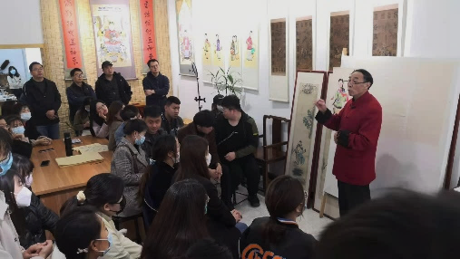 考察队伍从历下校区出发,首赴济南市长清区的灵岩寺。灵岩寺位列中国“四大名刹”,存有被梁启超誉为“海内第一名塑”的宋代罗汉塑像。灵岩寺彩塑在中国古代美术史中有重要的地位,是研究当时雕塑技法和审美观念的重要资料。岱庙的主体为天贶殿,与北京故宫、曲阜孔庙并列为中国古代三大宫殿式建筑之一,内有历代碑碣石刻和汉柏唐槐,以及《泰山神启跸回銮图》壁画,极具历史和艺术价值。嘉祥《武氏祠》汉代画像石。武氏祠画像石是我国最大、保存最完整的汉碑、汉画像石,在中国古代美术史中有重要地位,其中描绘神话、历史故事以及社会生活等内容的图像成为后世了解古代社会细节的百科全书,其繁复精细的雕工、劲挺流畅的造型蕴含着汉代文化的勃勃生机和雄浑气象。师生们漫步在孔府、孔庙感受中国古代政治、思想、文化等方面的沿承和变化,感受着儒家文化的数千年延续和厚重积淀。9日,参观青州博物馆,通过丰富的馆藏了解古代青州作为“九州”之一的重要地位,尤其龙兴寺出土的大量精美佛像令人目驰神迷。杨家埠年画、万印楼、十笏园,非物质文化遗产项目扑灰年画,都让师生们流连忘返。