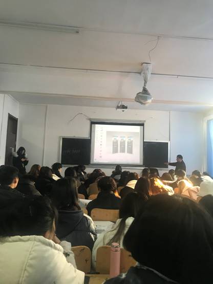王庆广老师结合自身7年的一线设计工作经验,服务过多家著名品牌,有着丰富的实战经验,为学生们讲解了自己的设计作品及目前设计行业对人才的需求。董晓辉老师从助力设计专业技能提升,辅助人才规划与发展方面,从案例教学就设计类专业就业,考研,留学咨询进行了讲解,使学生受益匪浅。
