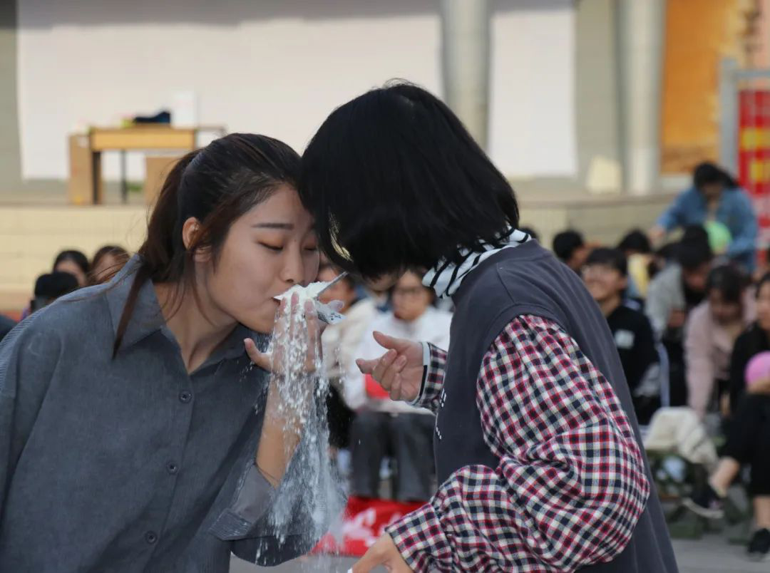 活动伴随着同学们精彩的才艺如火如荼的进行着。运动场上气氛热烈、人声鼎沸,运动员们更是能尽情宣泄自己的激情。来自各个班级的参赛人员进行了趣味比拼,半天的赛程对队友们的精神体力是一个考验,但每一个都咬紧牙关,全力以赴。