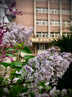 安静的校园透露着活泼的气息,几树繁花,争奇斗艳。