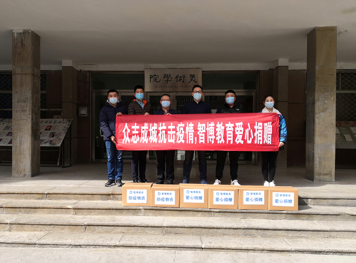 美术学院党总支书记刘增军代表美术学院全体教师向济南市智博教育培训学校一行表示衷心的感谢,并将妥善用好这些物资,为打赢疫情防控阻击战发挥积极作用。