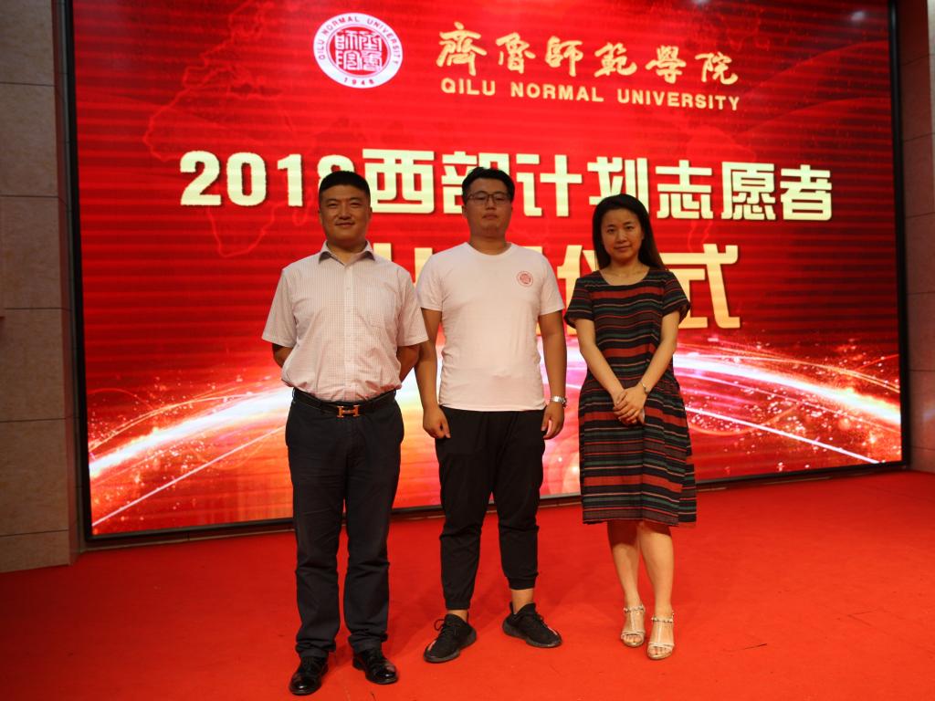 2018年6月26日在章丘校区图书馆报告厅举行“西部计划志愿者出征仪式”,党总支副书记胡颖杰以及团总支书记梅茹出席本次活动。美术学院2015级装潢一班周长岳以志愿者的身份出席仪式,追随自己的梦想,听从内心的召唤,志愿去新疆服务西部计划工作,用一年的时间,做一件终生难忘的事!