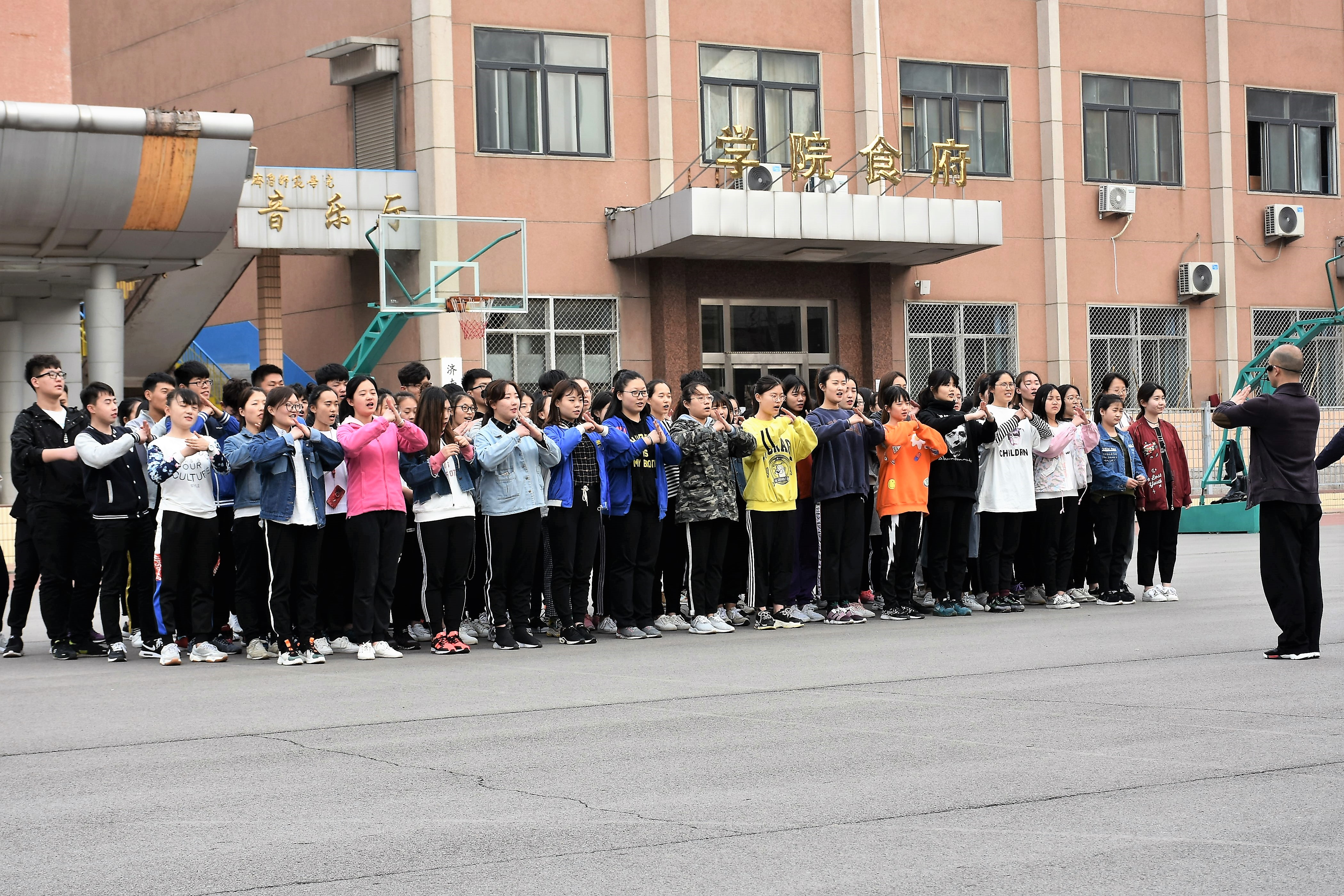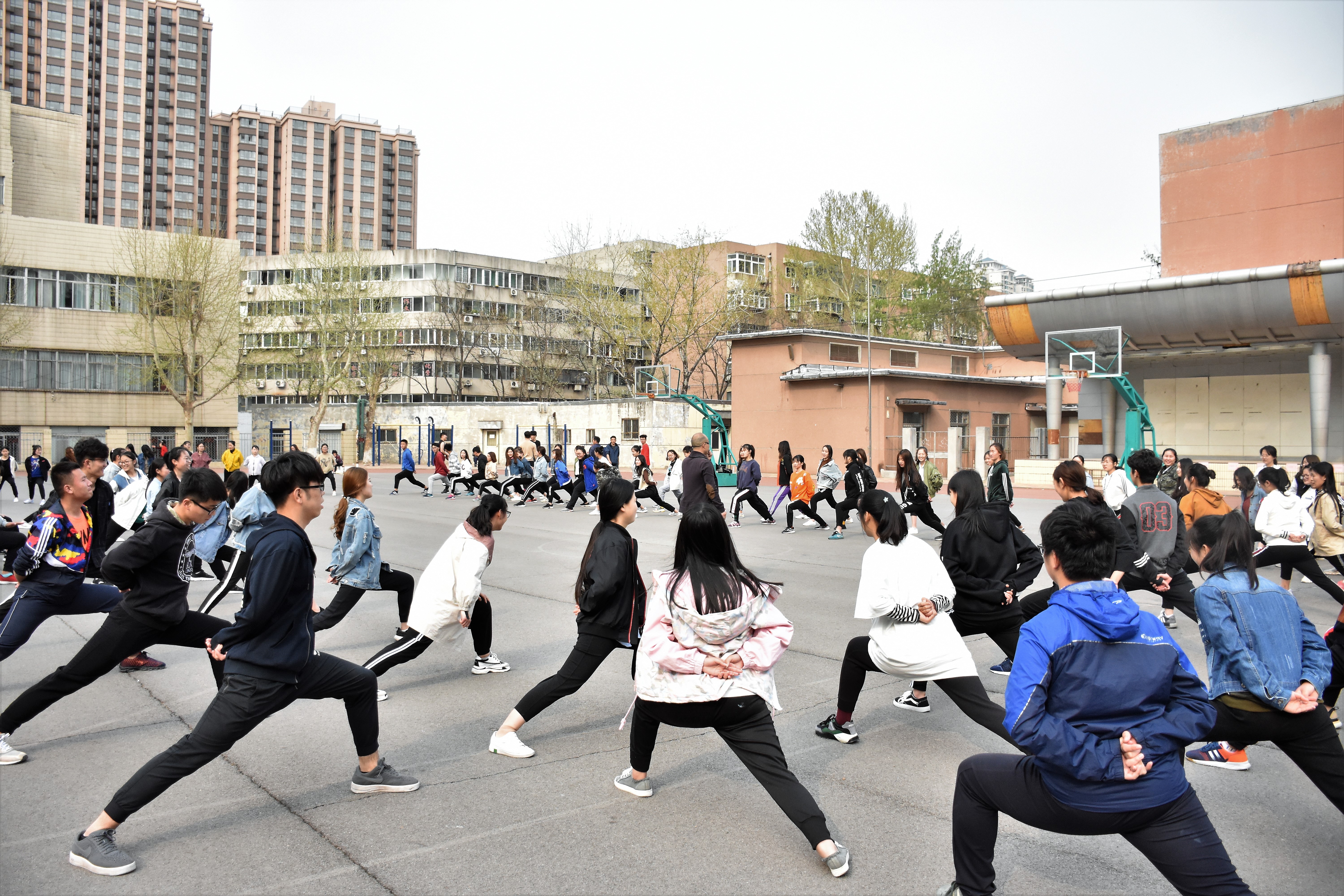 3月29日14时,同学们准时到达操场,院学生会学习部成员认真清点人数,并协助武术老师进行开课准备工作。课程上武术老师认真示范,同学们仔细学习,一个个动作,一声声呐喊,无不展现美院学子的积极的精神风貌,场面十分壮观。