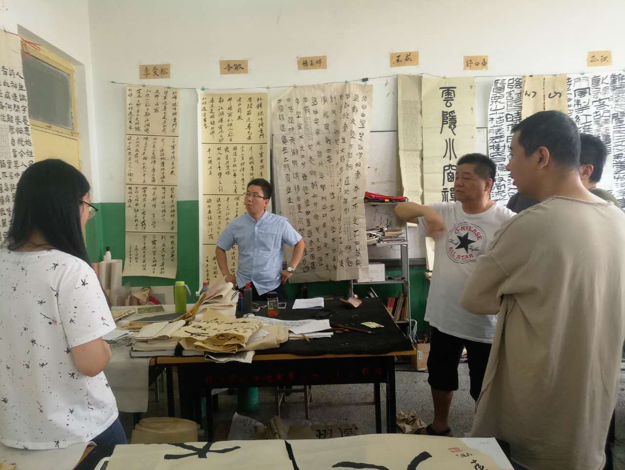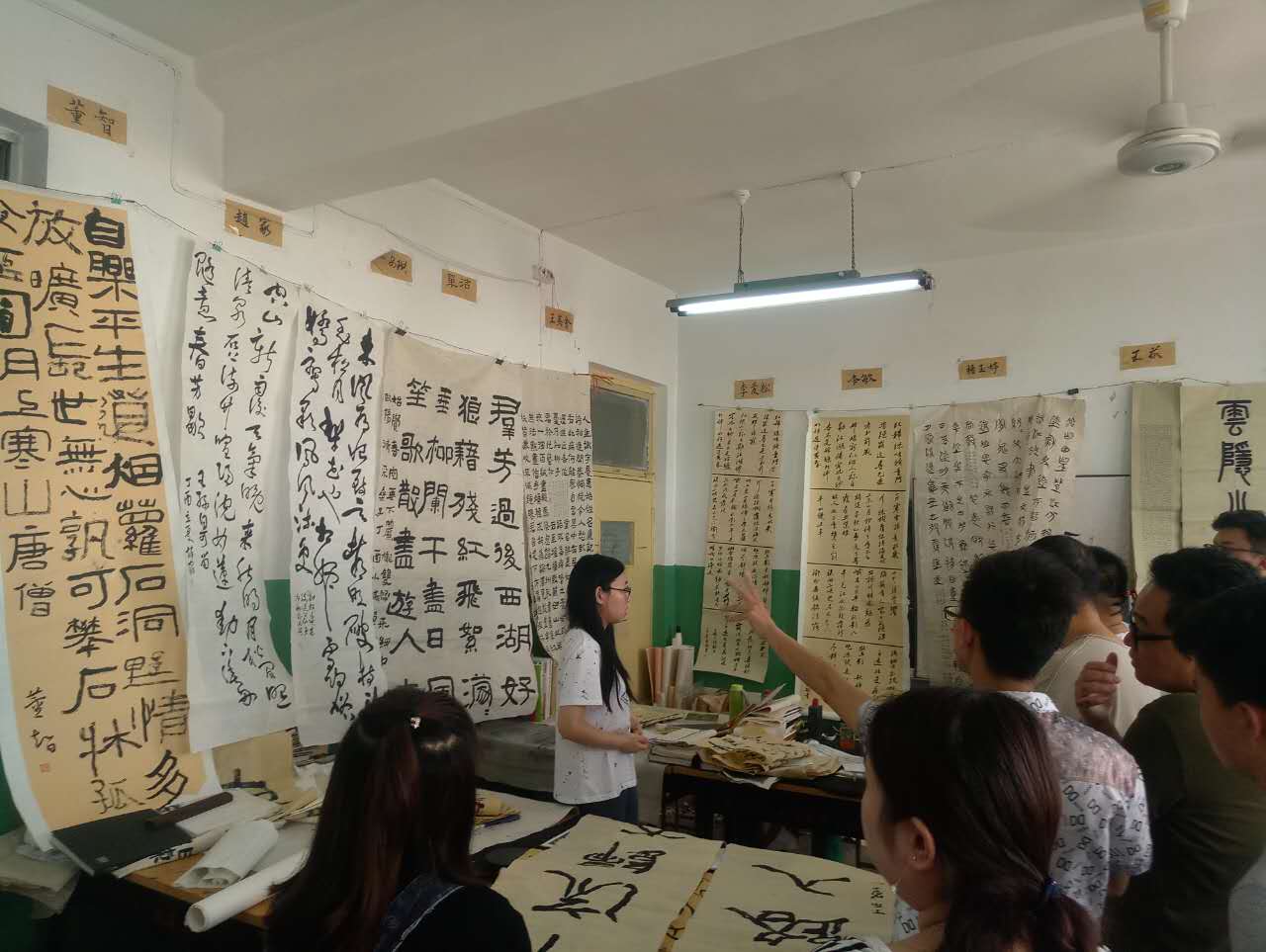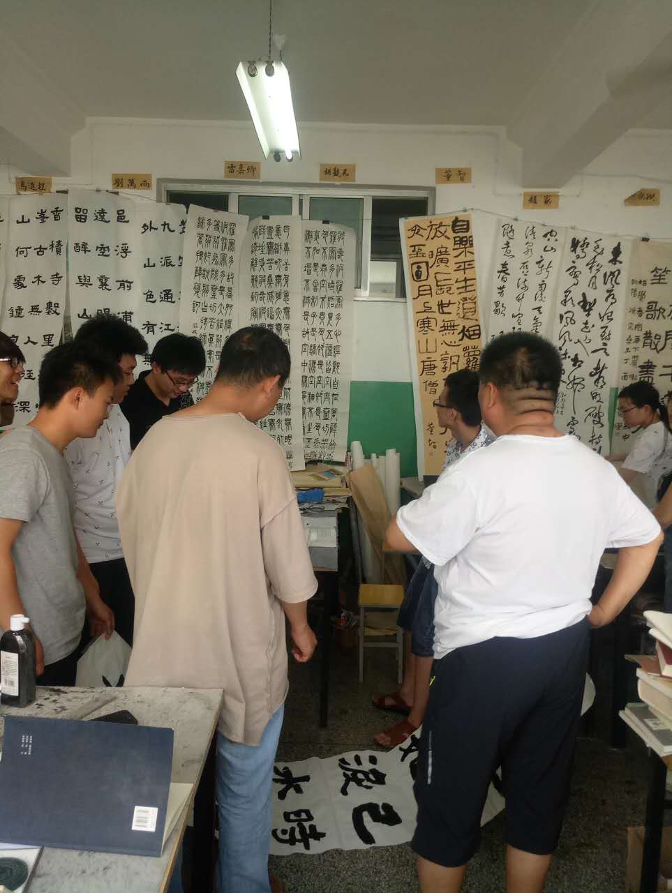书法本科专业13级同学的毕业创作进入了最后的定稿阶段。昨日,王始钧教授与书法教研室全体教师一同到毕业创作现场指导作品,并进行最后定稿。