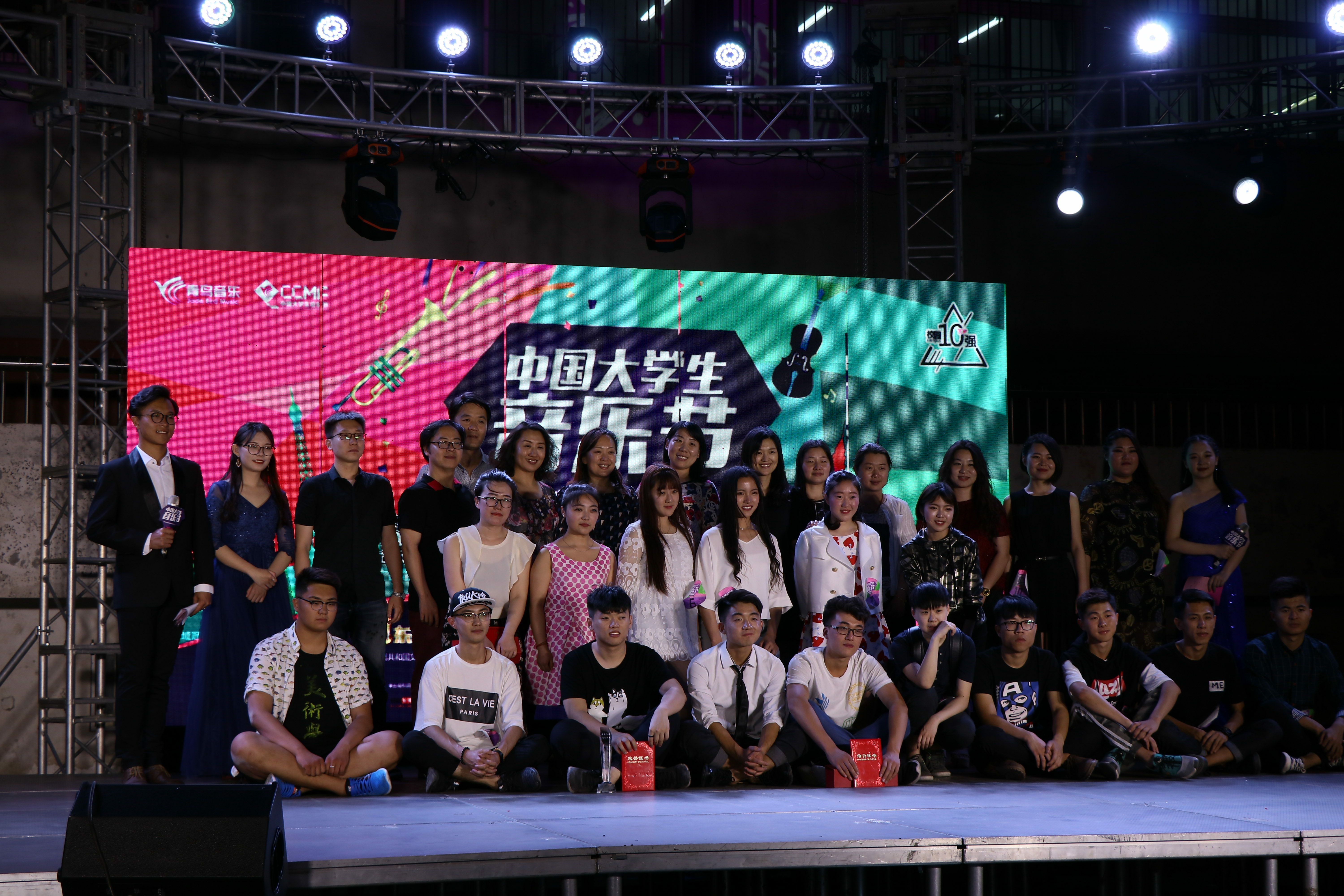 最后,领导老师与参赛者们合影留念,本次音乐节丰富了大学生活,展现了同学们昂扬向上、积极乐观的风貌,本次活动的圆满结束,得益于学校领导的大力支持,幕后工作者的辛苦付出,以及参赛者们的倾情演唱,最重要的是同学们青春活力的助推剂。