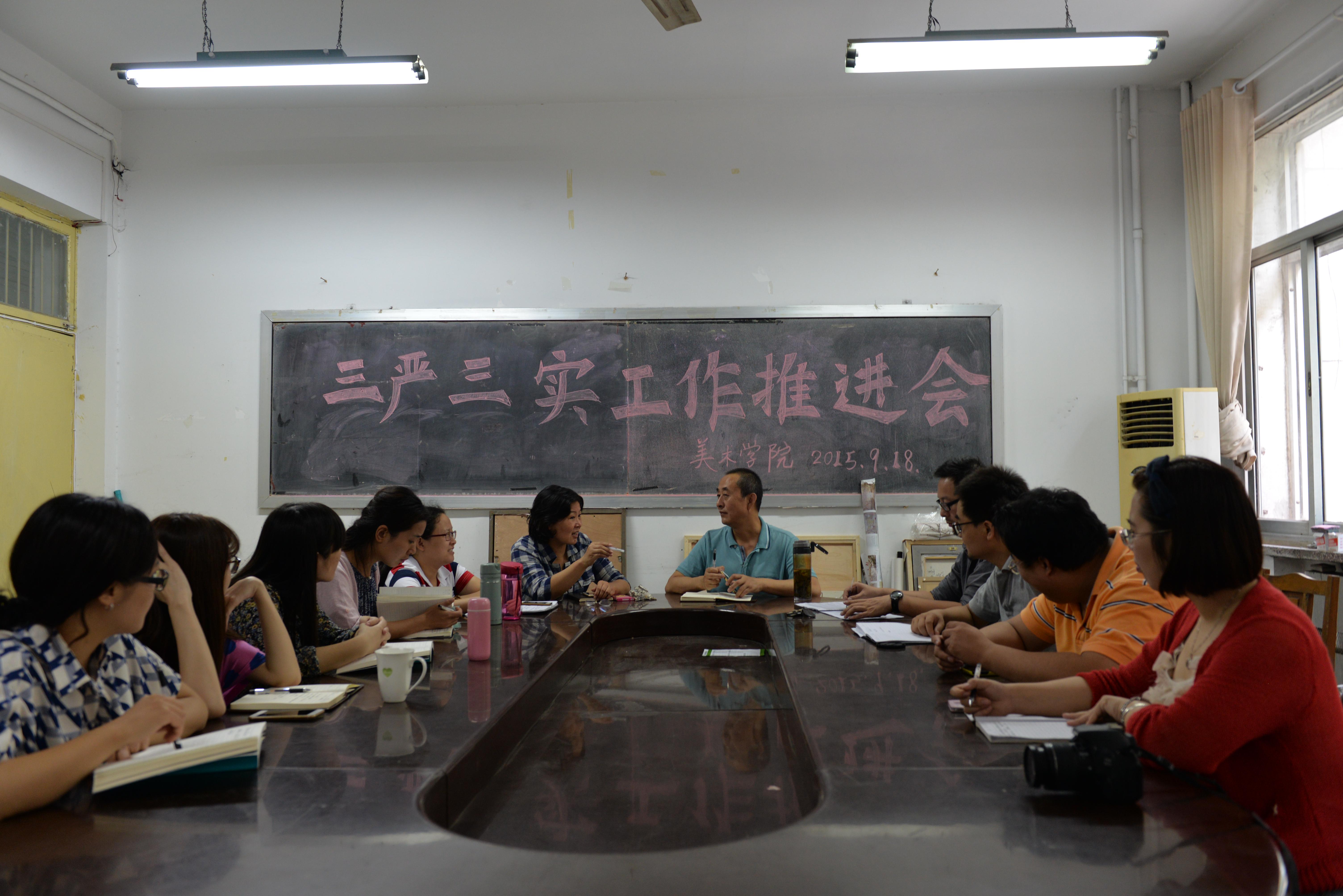 为切实开展“三严三实”专题教育活动,2015年9月18日,美术学院在历下校区学院会议室召开“三严三实”工作推进会,与学生接触密切的老师和全体辅导员老师均参加了推进会,会议由美术学院党总支书记何伟主持。