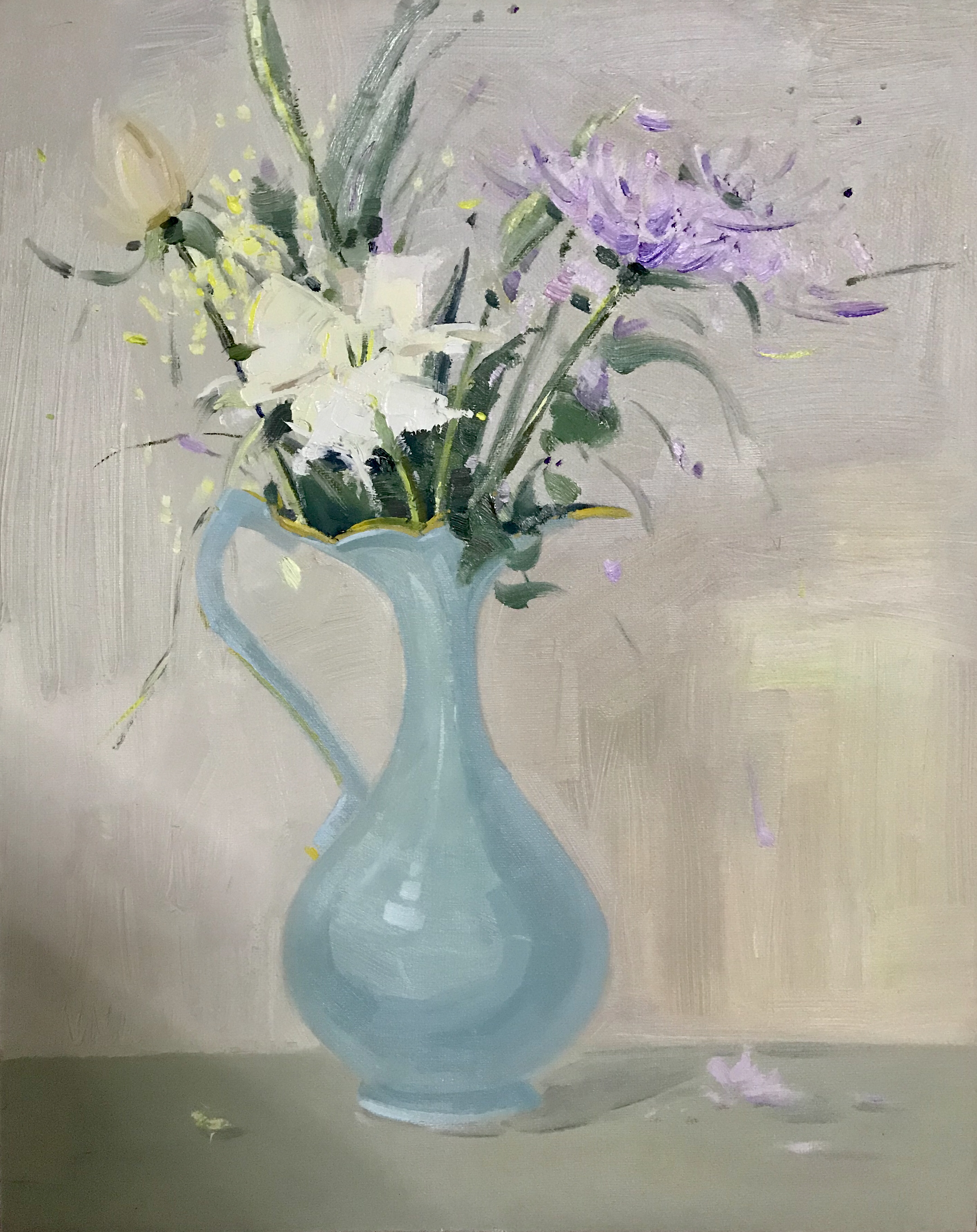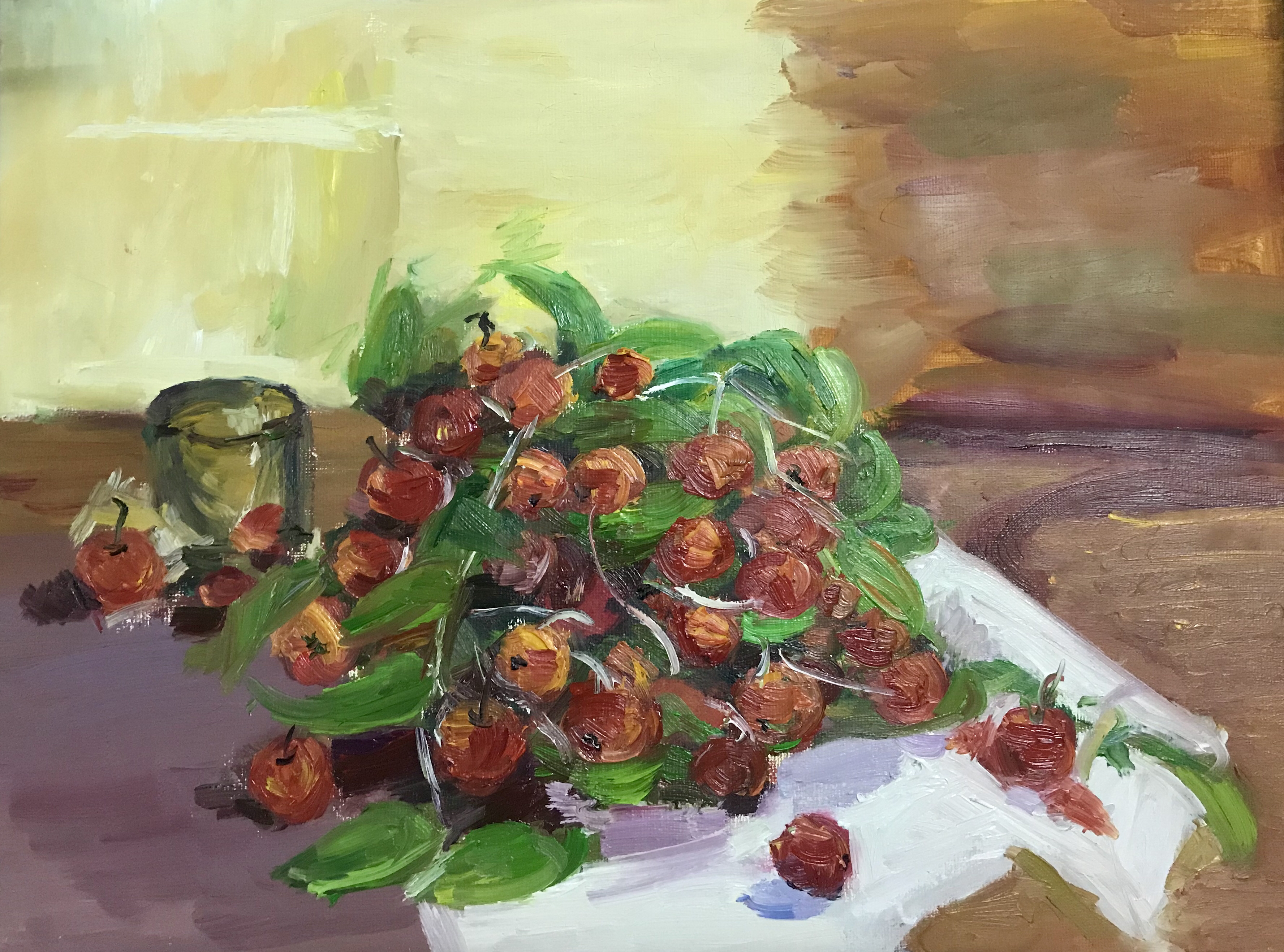 三是写生,参照实物,将自己的心绪浸染,付诸笔端,倾注情感。对稀松平常的静物自主创作,写生期间明亮老师还多次为同学们作范画指导,提升对油画的感知与理解。